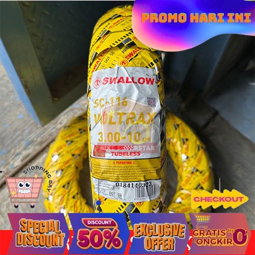 Ban Luar Vespa 3.00 - Ring 10 Motor Listrik Swallow Voltrax Tubeless BERKUALITAS