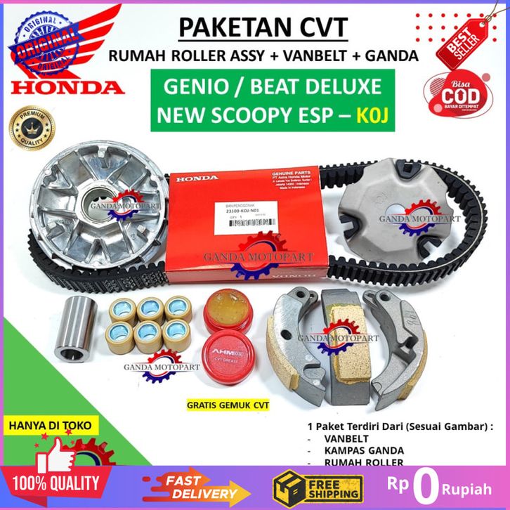 PAKETAN VANBELT RUMAH ROLLER KAMPAS GANDA BEAT NEW DELUXE ALL GENIO SCOOPY NEW 2020 S/D 2024 K0J KOJ