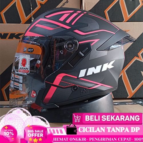 CICILAN/ HELM INK TERRA 2 MOTIF#1 MATT BLACK FUXIA SINGLE VISOR - BLACK, S