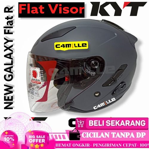 CICILAN/ HELM KYT GALAXY FLAT R SOLID MATT GORILLA GREY DOUBLE VISOR HALF FACE - L