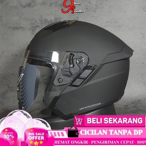 CICILAN/ RSV SV300 SOLID / BLACK DOFF / DOUBLE VISOR HELM HALF FACE - XXL