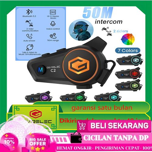 [Mall] CICILAN/ GEARELEC C2 BLUETOOTH HELM SEPEDA MOTOR 2 ORANG INTERCOM HEADSET - C2, TIDAK CONTROL