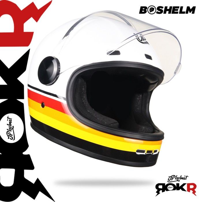 CICILAN/ HELM RETRO JP ROKR MOTIF 01 BROKEN WHITE HELM FULL FACE SNI - 02 BROKEN WHITE, XL