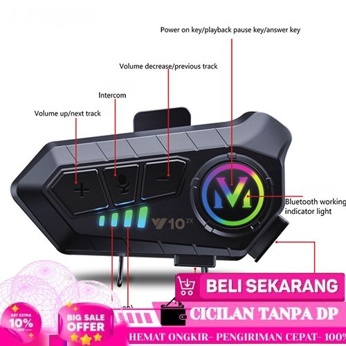 CICILAN/ Y10 BLUETOOTH 5.3 HELM SEPEDA MOTOR BLUETOOTH HEADSET INTERCOM HANDS FREE CALL KIT IPX6 TAHAN AIR