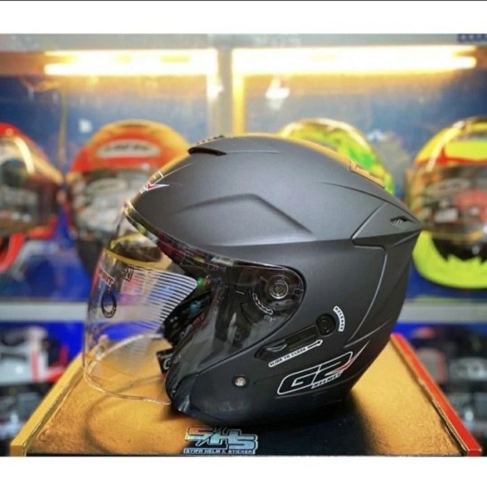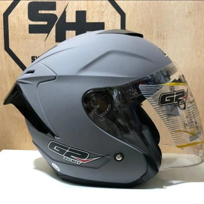 CICILAN/ HELM G2 OPTIMAX SOLID/POLOS DOUBLE VISOR-PUTIH, M - DARK GREY GLOSS, L