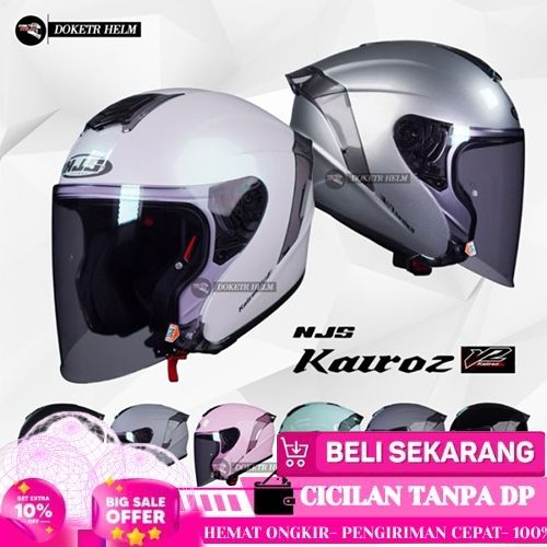 CICILAN/ HELM NJS KAIROZ SOLID V2 HALF FACE FLAT VISOR - BLACK GLOSSY, M