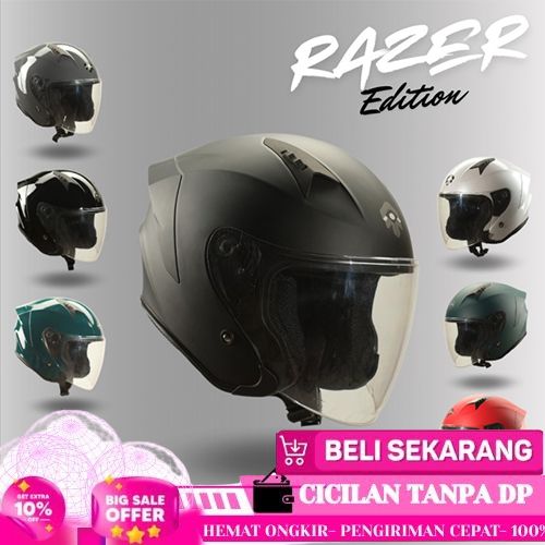 CICILAN/ HELM DEWASA HALF FACE SPOILER RAZER - METAL BLACK - GREY GLOSSY , SIZE L