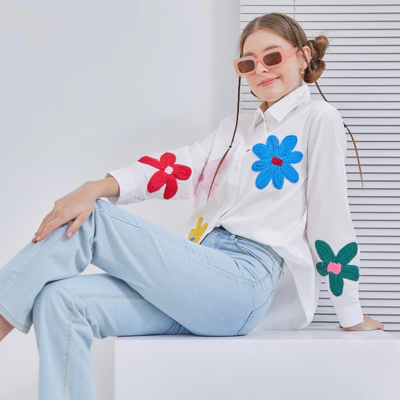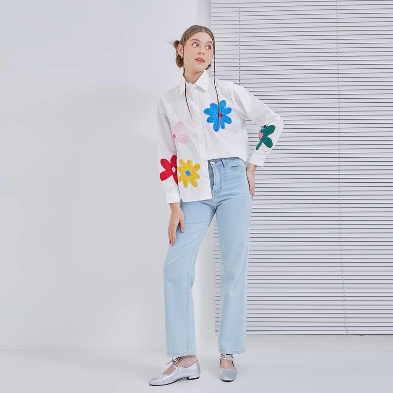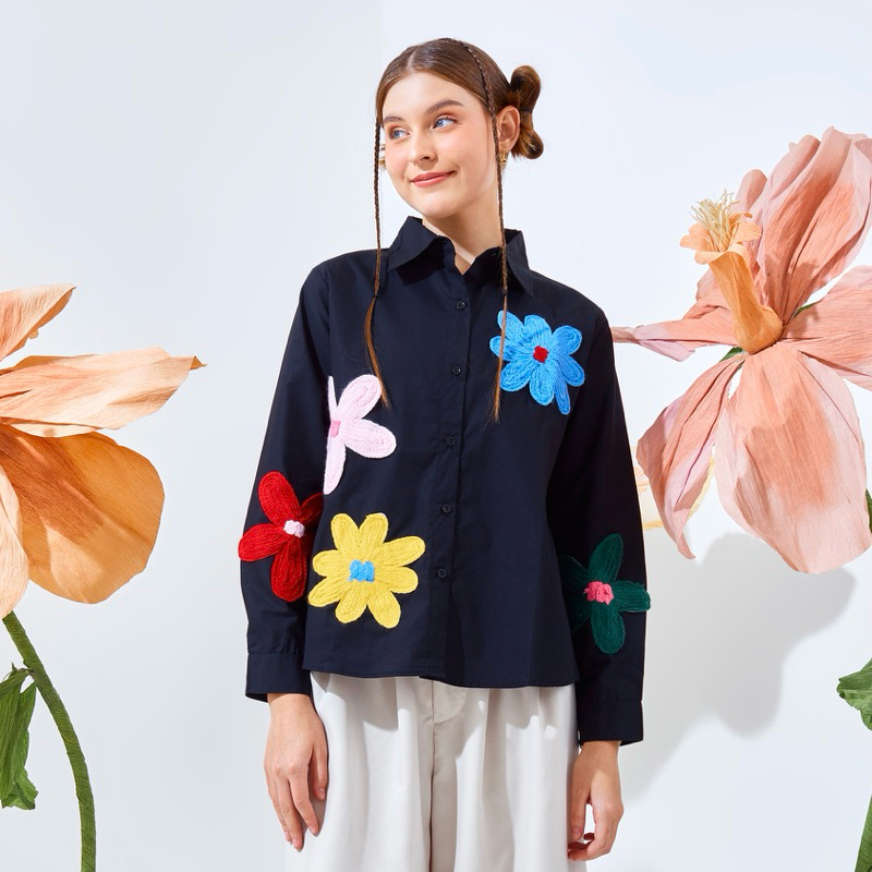 Niwa Flower Shirt / Atasan Kemeja Bunga Wanita / Kemeja Wanita Style Jepang Korea / Atasan Wanita Bunga