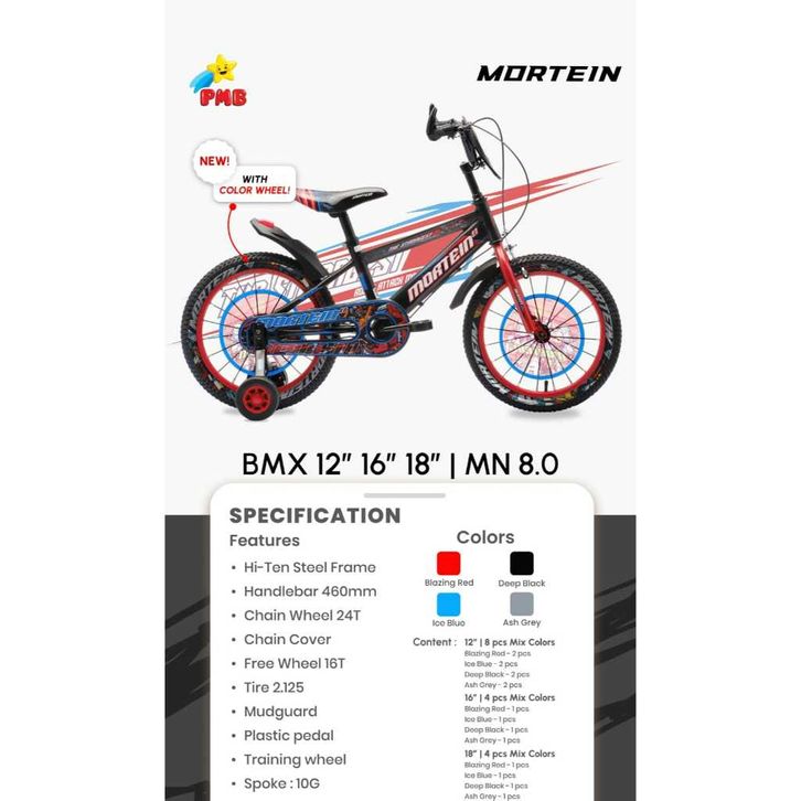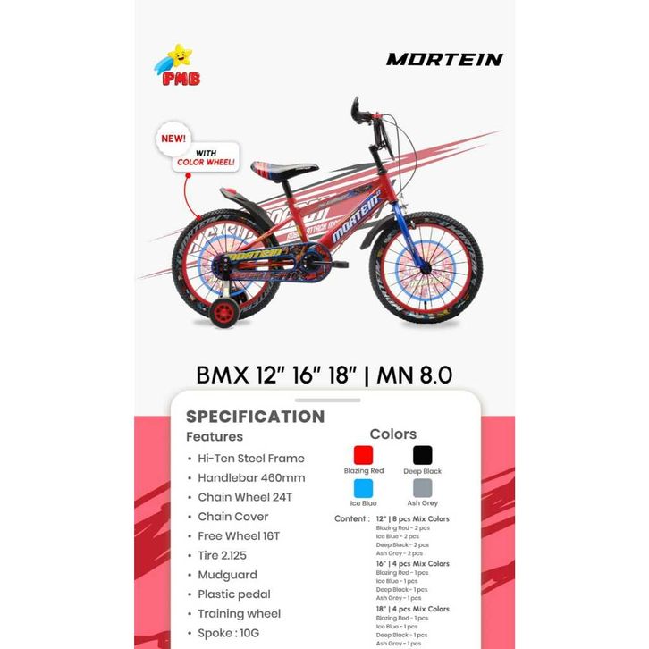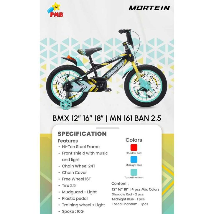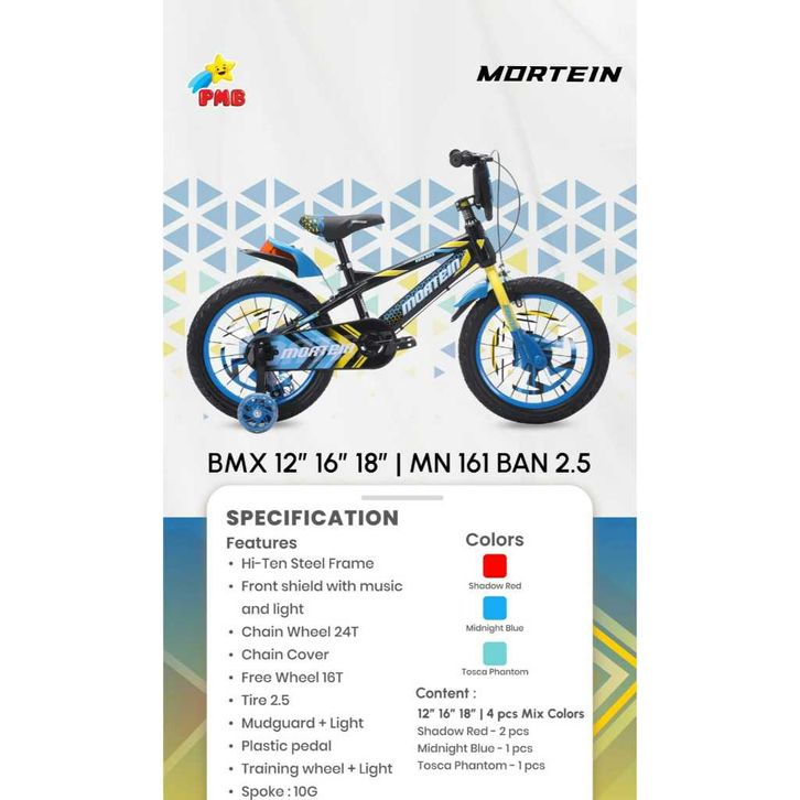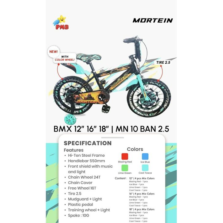 SEPEDA BMX ANAK LAKI LAKI 12 16 18 INCH PMB MORTEIN MN 10 / MORTEIN MN 8.0 ADA MUSIC LAMPU SEPEDAH KEREN KEKINIAN TOP