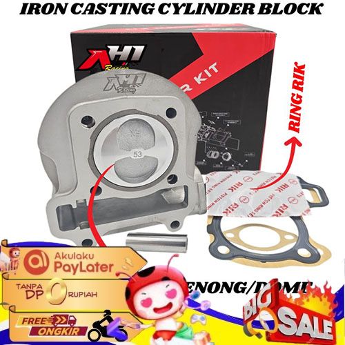BLOK SEHER GENIO NEW BEAT LED DELUXE NEW SCOOPY 2021 UP BORE UP 53 MM - PISTON DOME GRATIS ONGKIR