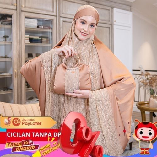 TAZBIYA X INDAH NADA AYESHA SERIES | Mukena Silk Premium Renda - BLACK BEBAS ONGKIR