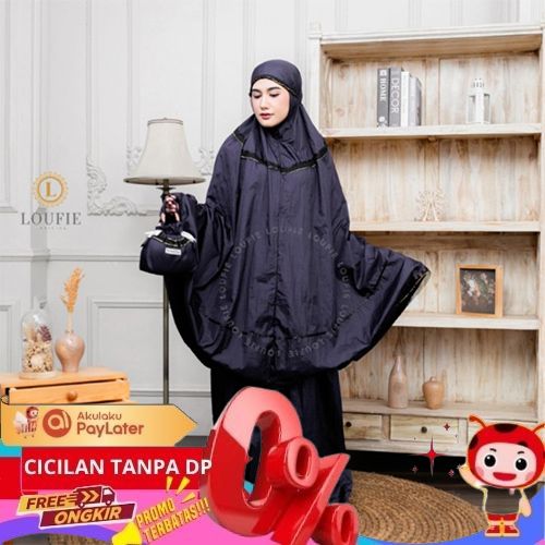 mukena parasut jumbo loufie/mukena travelling - Hitam BEBAS ONGKIR