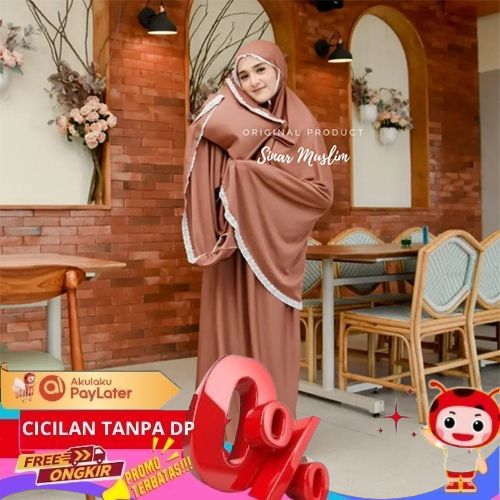Mukena travel dewasa murah bagus -mukena jumbo renda bonus tas amplop - hazelnut, tasbih BEBAS ONGKIR