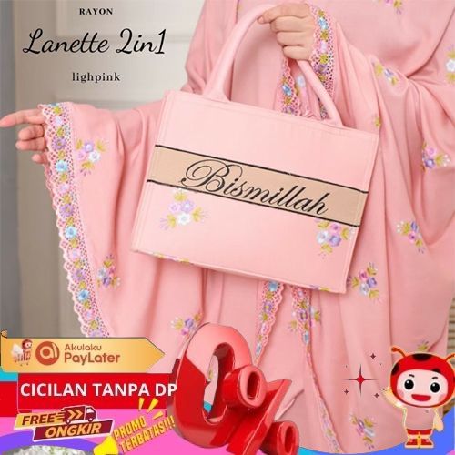 Mukena Dewasa Jumbo Rayon Bordir Lanette Premium 2in1 - Broken White BEBAS ONGKIR