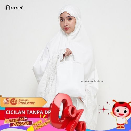 ALFAUZI - Mukena Dewasa Putih Polos Renda Bordir | Mukena Aisyah - Putih BEBAS ONGKIR