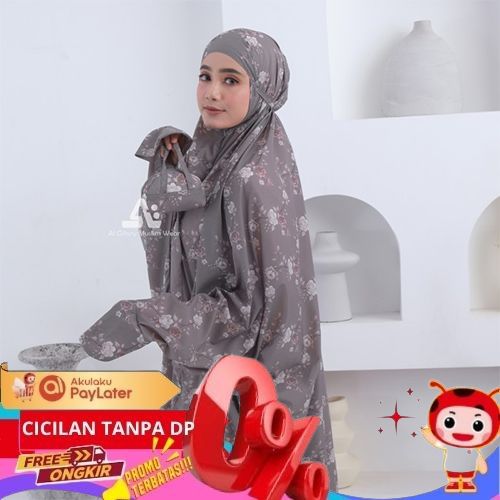 Mukena Terusan Mini Travelling 2in1 Parasut Motif Korea - Peony DustyPink BEBAS ONGKIR