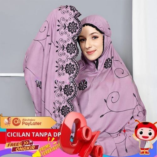 Mukena Gracella Full Bordir Jumbo Mukena Premium Perlengkapan Sholat - Abu-abu BEBAS ONGKIR