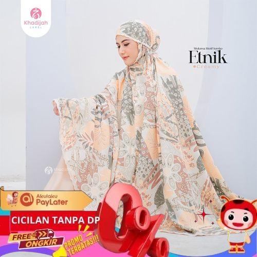Mukena Super Jumbo Dewasa Terbaru Resleting Motif Batik Etnik - Creamy BEBAS ONGKIR