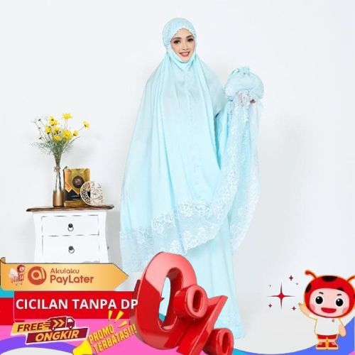Mukena Cantik Qailla Menutup Dagu Zara Silk Premium dapat Sajadah muka - Light Blue BEBAS ONGKIR