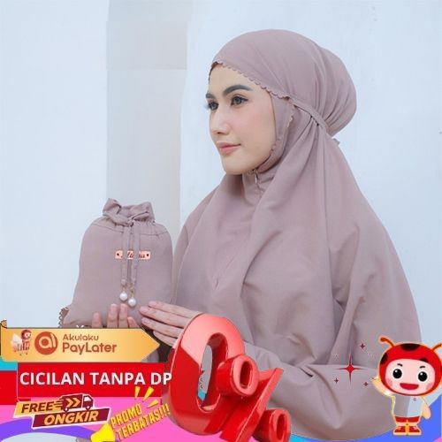 Mukena Dewasa Traveling 2 in 1 Katun Laser Cut Simpel Elegan - Abu-abu BEBAS ONGKIR