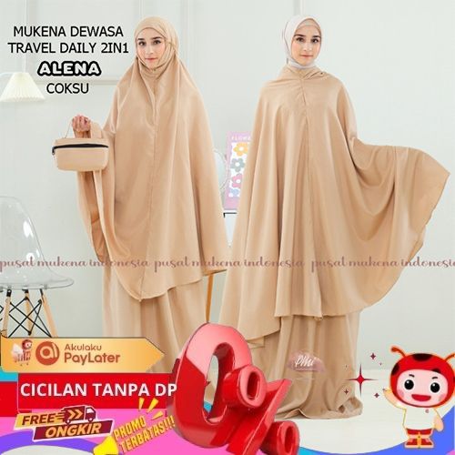 Pusat Mukena Indonesia - Mukena Travel Daily Katun Polos 2in1 Alena - HITAM BEBAS ONGKIR