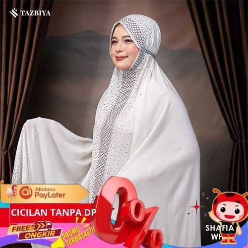 MUKENA SAJADAH TAZBIYA 2IN1 SHAFIA WHITE ALLSIZE - BLACK BEBAS ONGKIR