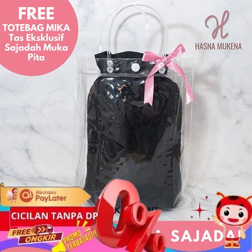 Hampers Mukena Sajadah Silky Renda Free Tas Travelling & Box - Black Elegant, Totebag Mika BEBAS ONGKIR