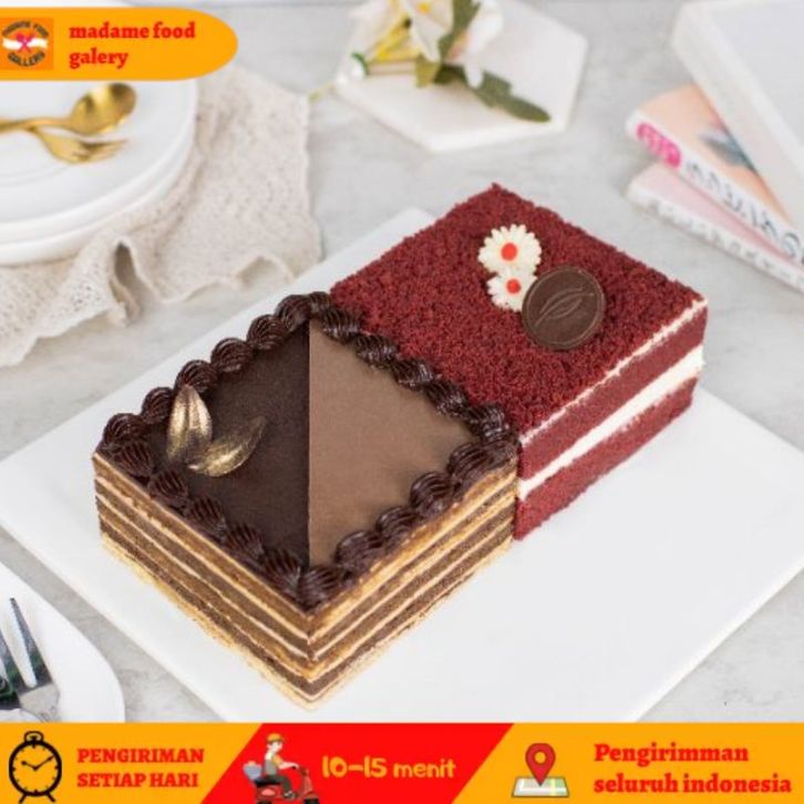 DAPUR COKELAT Two in Loaf Red Velvet & Opera Cake 20x10 Kue Ulang Tahun