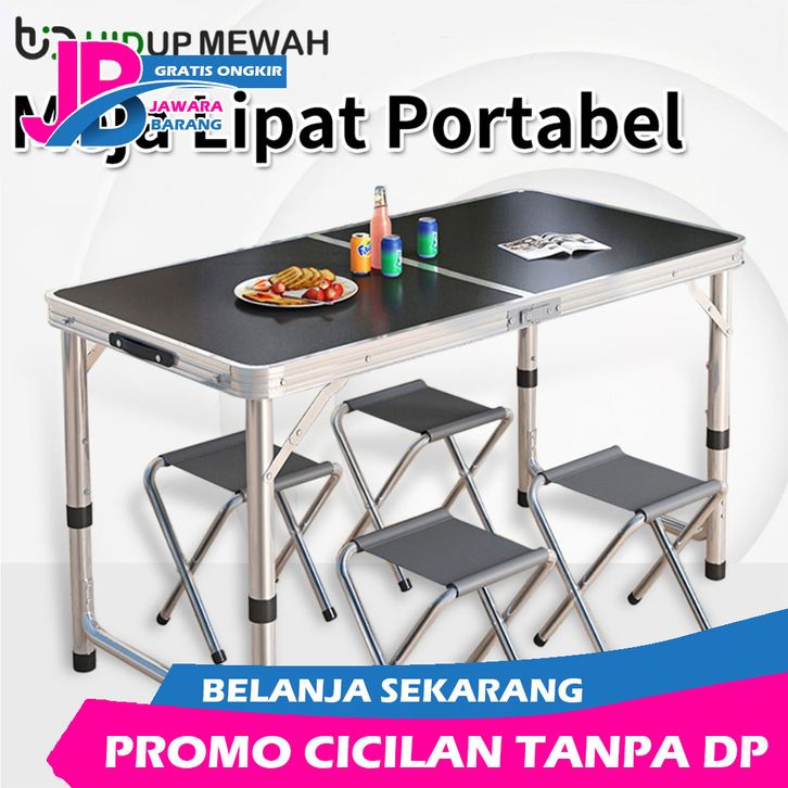 Meja Lipat Meja Koper Portabel Aluminium 120x60 CM Meja Camping Outdoor Meja Jualan Serbaguna Kaki Bulat