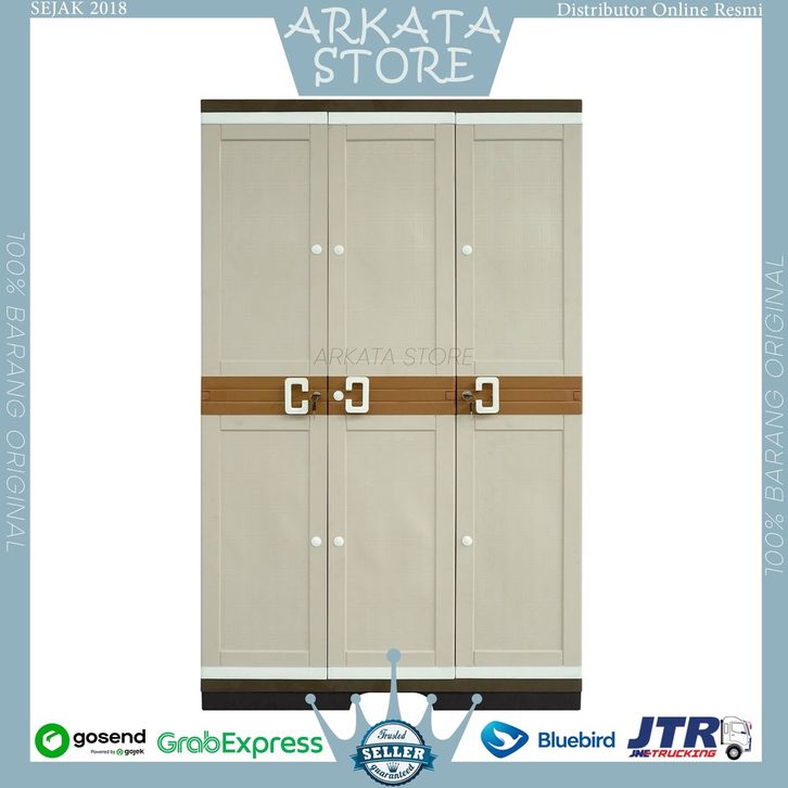 LEMARI PLASTIK BERKUALITAS 2024 - CLUB LEMARI PAKAIAN PLASTIK 3 PINTU GANTUNG KACA LP 3 ROCOCO