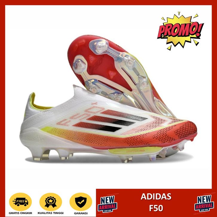 ( GRADE ORIGINAL ) Sepatu Bola Adidas F50+ Elite Laceless White Red Yellow