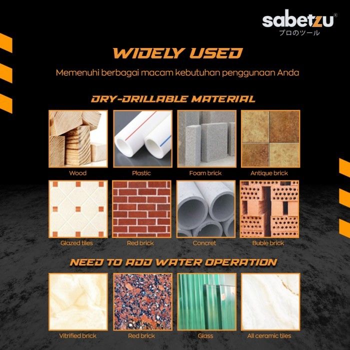 Mata bor tembok kayu besi keramik kaca set 5pcs multifungsi sabetzu