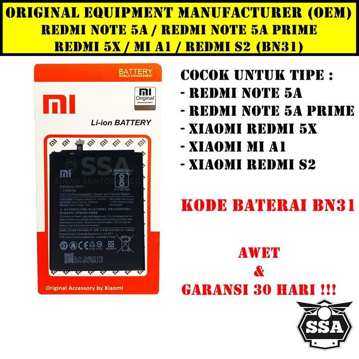 Baterai Original OEM Xiaomi Redmi Note 5a Prime Mi 5x Mi A1 Redmi S2 BN31 BN 31 Battery Batu Batre Batrei Batrai ORI HP