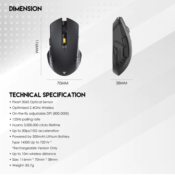Fantech RAIGOR III Rechargeable Baterai Mouse Wireless Gaming WG12R