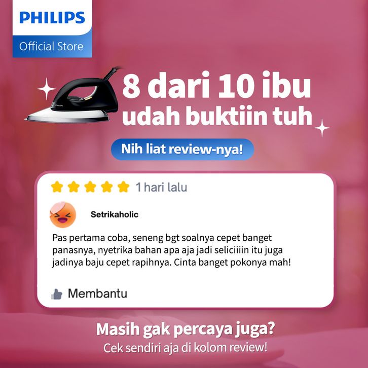 Philips Setrika kering HD1173/80 Hitam,Philips Set Ceramic 4 Lapis, Anti-Lengket, seterika philips,gosokan baju TERLARIS