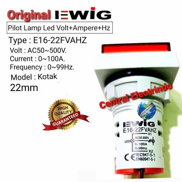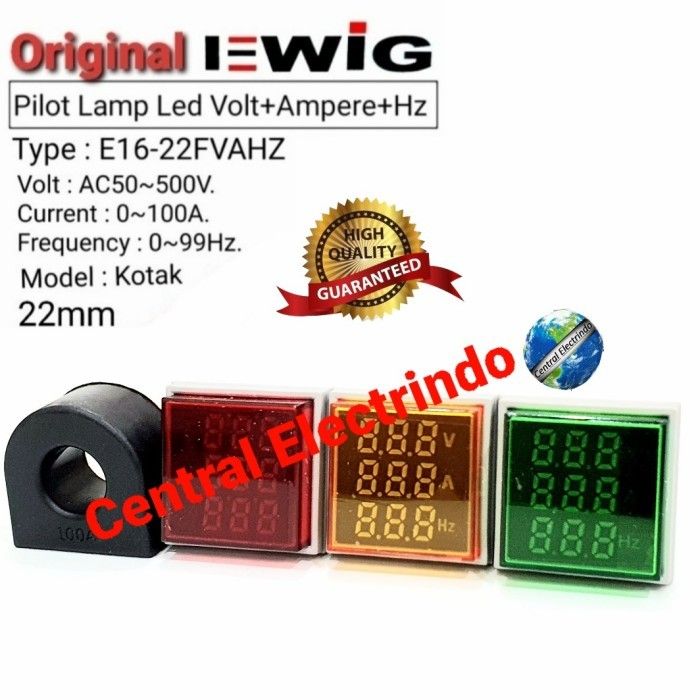 Pilot Lamp LED EWIG Volt+Ampere+HZ Indikator 22mm
