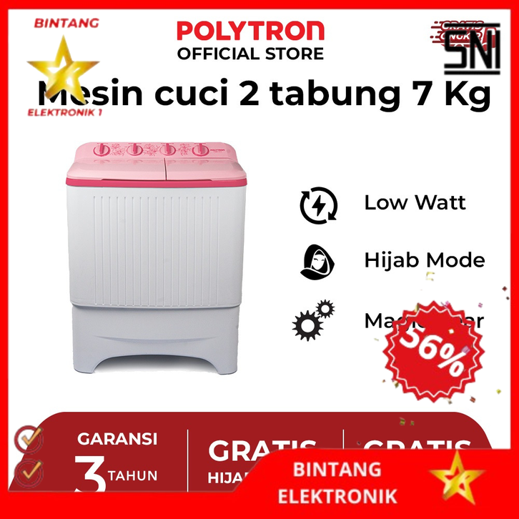 Mesin Cuci 2 Tabung Polytron Giant Series 7 KG - PWM 7073P Official Store