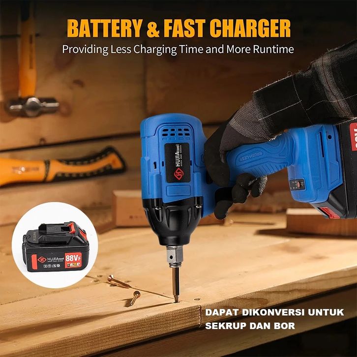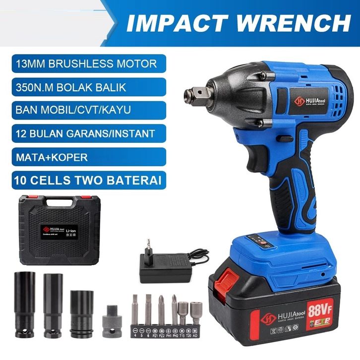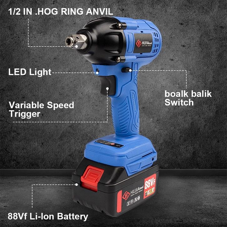 350N.M Impact wrench brushless murah 1/2Inch impact baterai 88vf impact baterai torsi besar 4.0Ah bor impact listrik pem