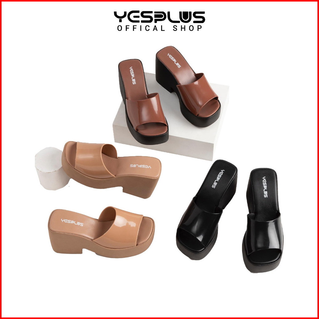 Yesplus Sandal Original 2320 Sandal Wanita Terbaru Slop Jelly Glosy Tinggi 9 Cm Import Pcu Size 36-39