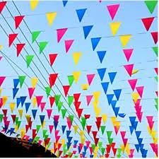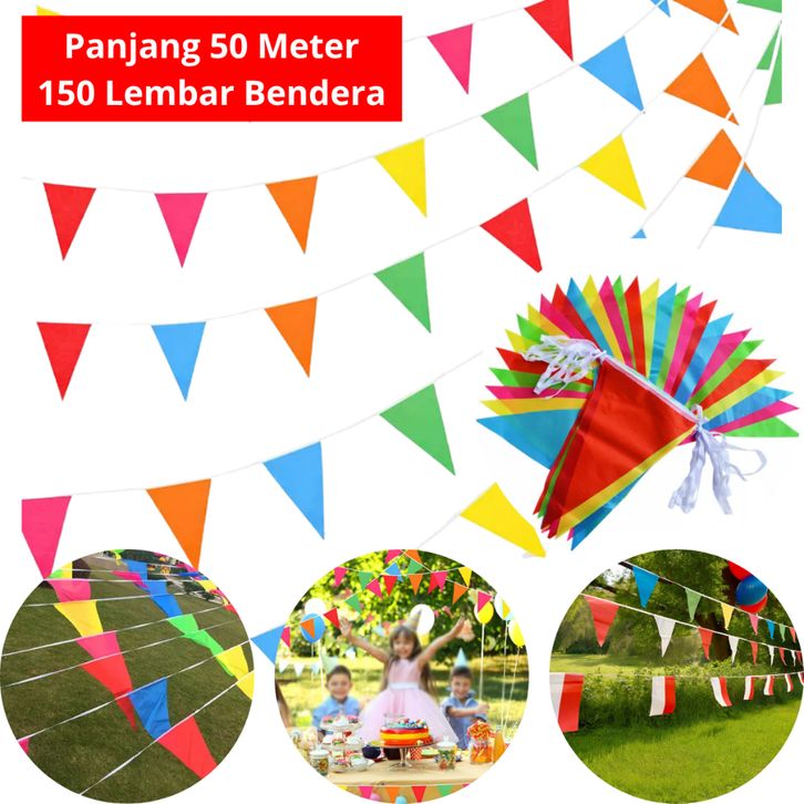 50 Meter Bendera Renteng Umbul Umbul Festival Karnaval Bunting Flag 150 Lembar Segitiga Merah Putih Warna Warni