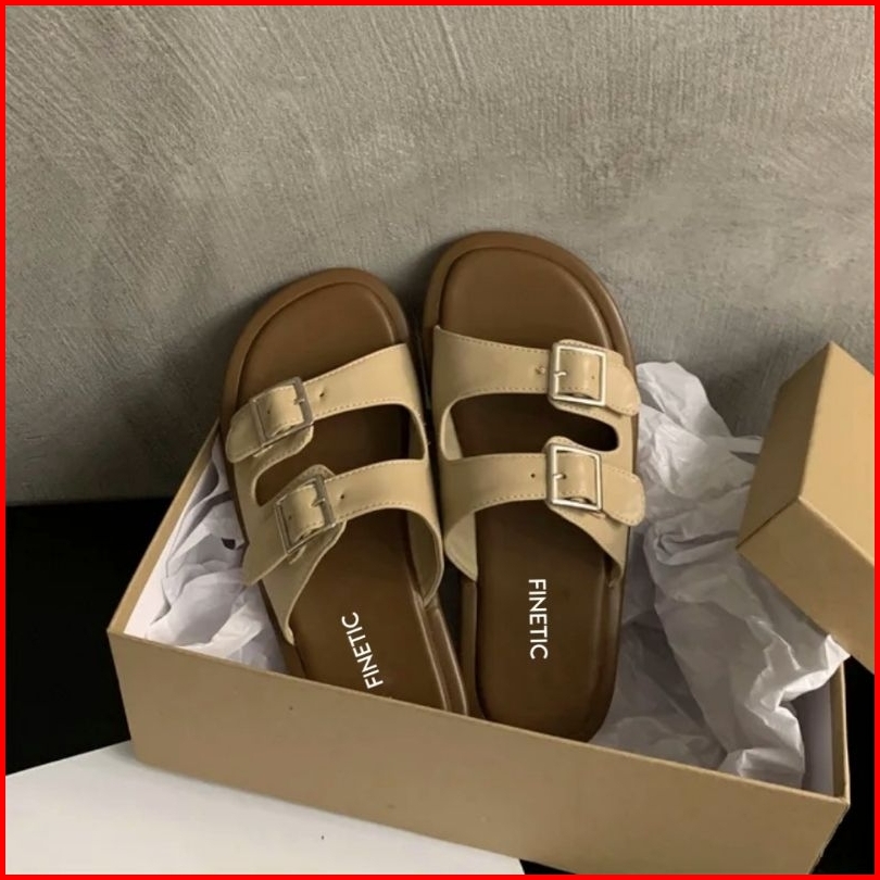 Finetic Sandal Kasual Wanita Model Terbaru Anti Slip Sendal Flatbed Cewek Karet
