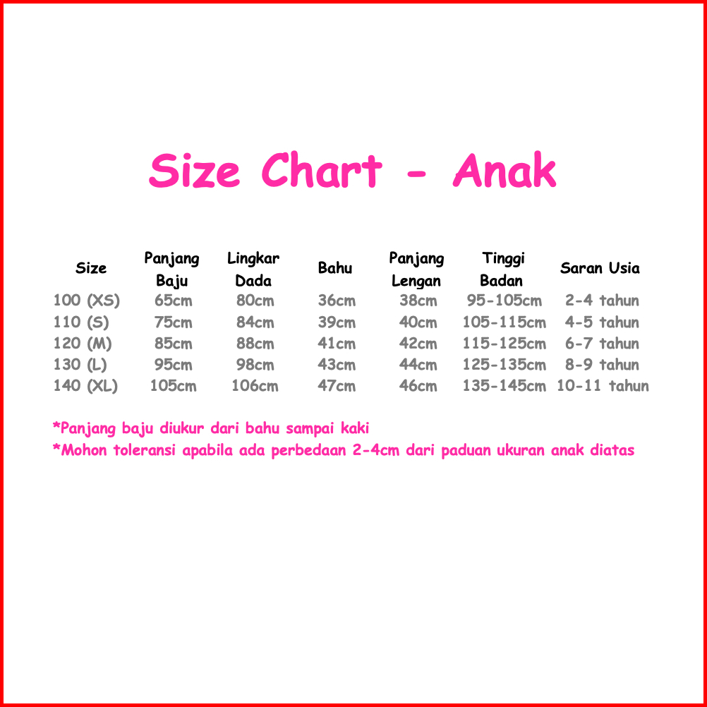 100CM ANAK, 110CM ANAK, 120CM ANAK, 130CM ANAK, 140CM ANAK