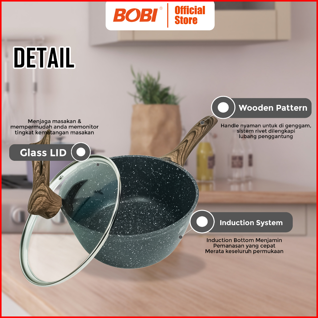 Bobi - Saucepan Cookware 18cm Kode Bb-s-18 Panci Anti Lengket Pan Kuah Masak Goreng - Warna Random