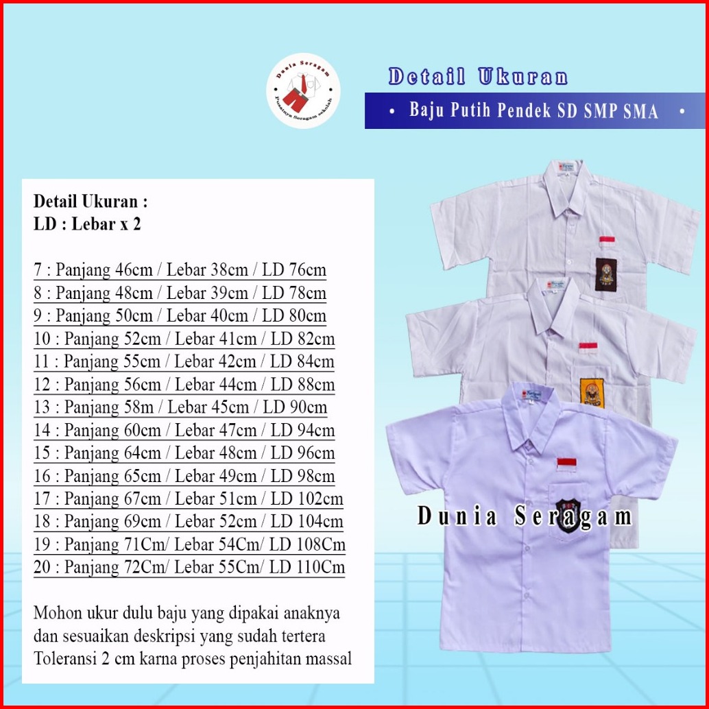 Baju Seragam Sekolah Sd Smp Sma Smk Laki Kemeja Hem Putih Lengan Pendek Bahan Katun Oxford By Dunia Seragam