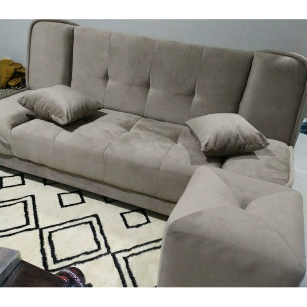 SOFABED MINIMALIS ABU FREE PUFF 1 DAN 2 BANTAL KURSI SOFA MINIMALIS FURNITURE PERLENGKAPAN RUMAH SOFA BED MURAH BERKUALI