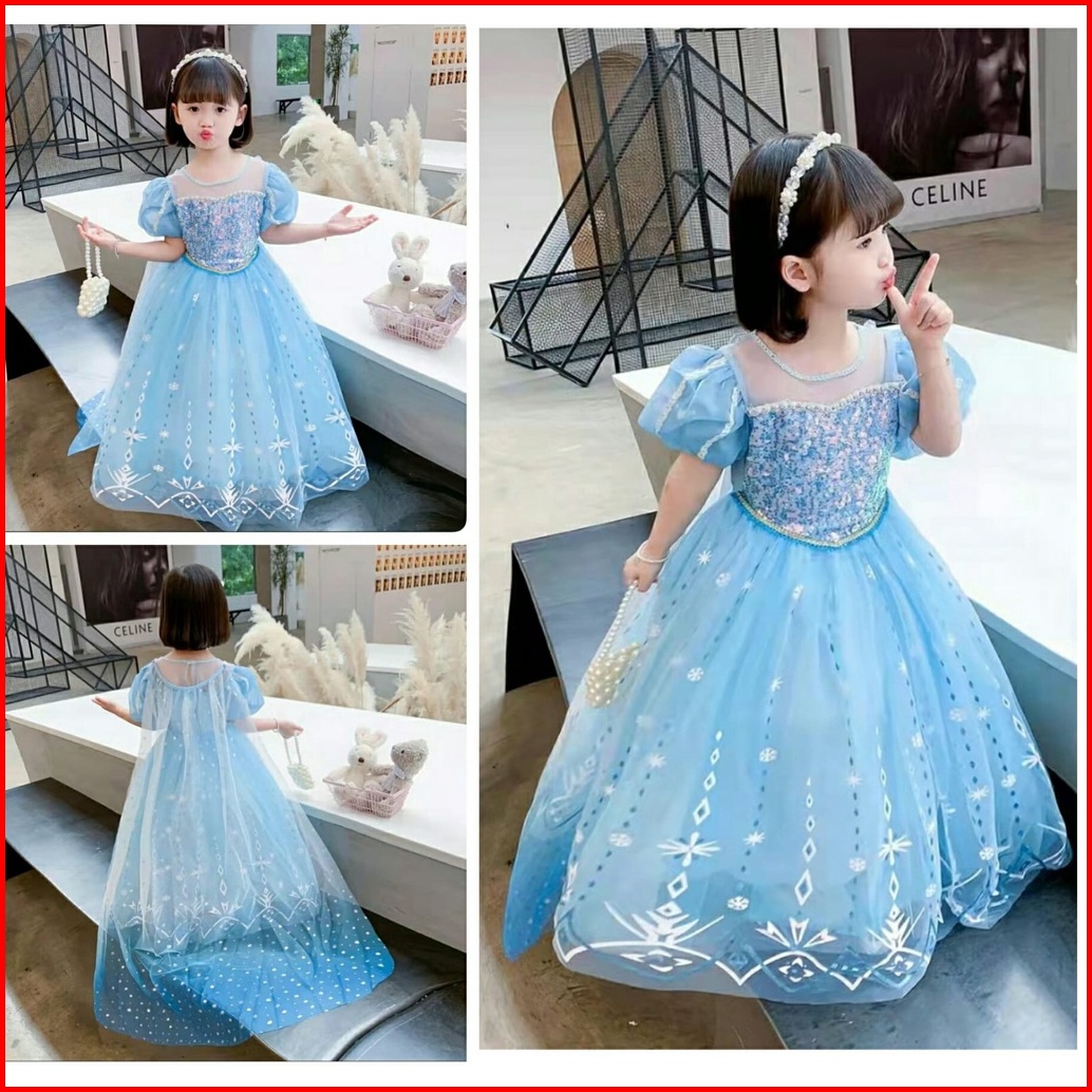 Kostum Frozen Elsa 33 Dress Princess Manik Baju Anak Tangan Balon