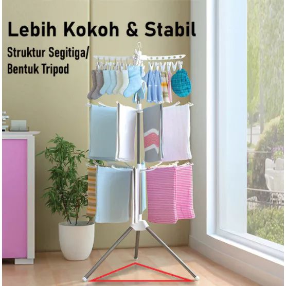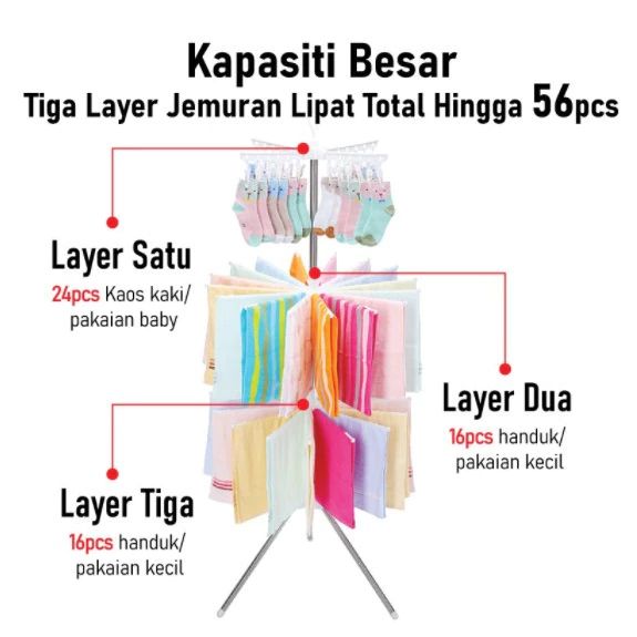 SEDANG PROMO !! Jemuran Menara Lipat Tempat Jemuran Pakaian Bayi Baju Model Menara 3 Gantungan Bayi