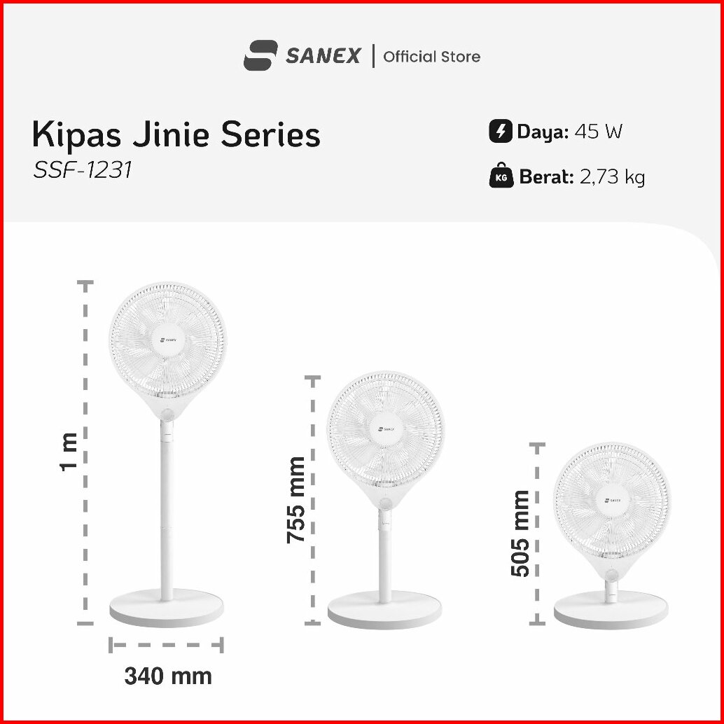 Sanex Jinie Series Kipas Angin Standing Berdiri 3in1 12 Inch Ssf-1231