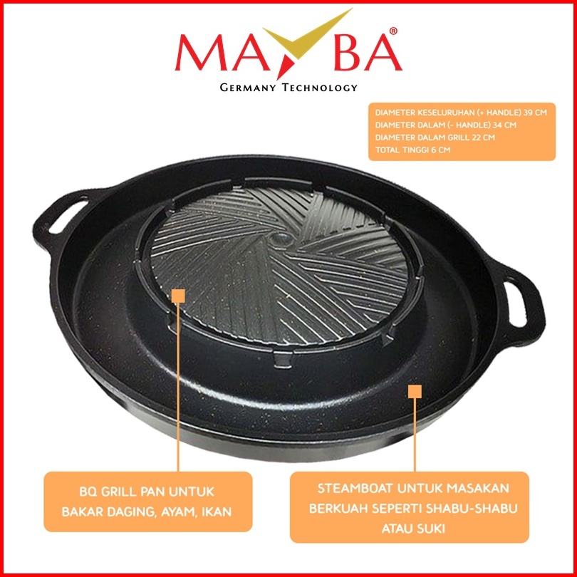 Mayba - Alat Panggangan Bulgogi 2 In 1 Korea Barbeque Grill Pan 2fungsi Pemangganga Dan Shabu Shabu Mookata