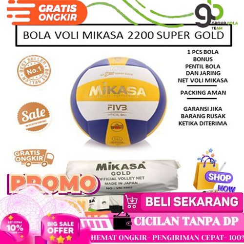 BOLA VOLI MIKASA 2200 SUPER GOLD DAN NET VOLI MIKASA GOLD - BOLA VOLY GRATIS ONGKIR